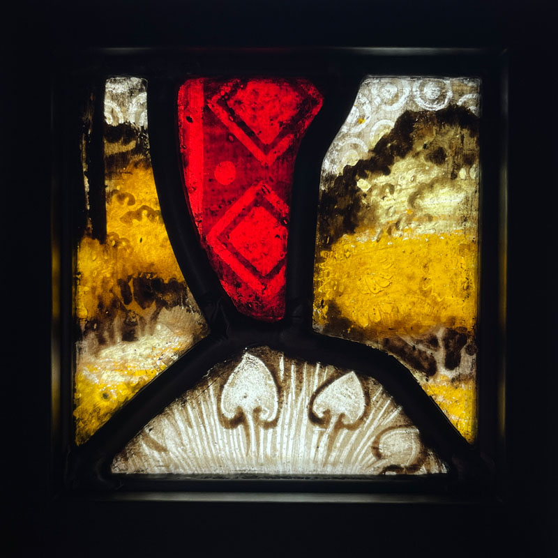 A small framed stained glass panel made with historic glass fragments from Charterhouse School in Godalming. The glass was originally made for the chapel in around 1872 by the London firm of Clayton & Bell. It has survived two fires and has been reinvented into a new work of art in my studio in Farncombe.