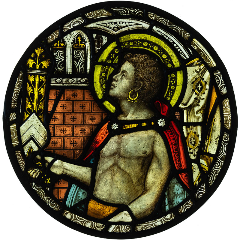 We don’t know which window the figure originally came from or who he is. I love the painting of the face and the detail of the earring.