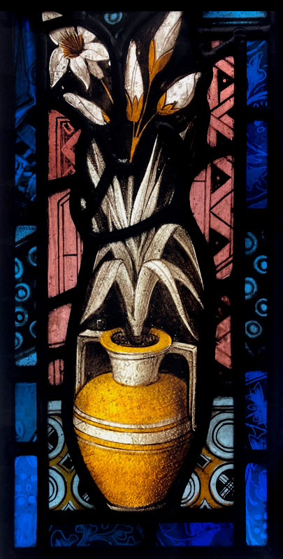 An unframed stained glass panel made with historic glass fragments from Charterhouse School in Godalming. The glass was originally made for the chapel in around 1872 by the London firm of Clayton & Bell. It has survived two fires and has been reinvented into a new work of art in my studio in Farncombe.