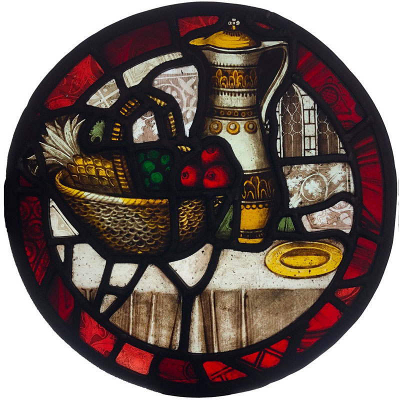 A round stained glass panel made with historic glass fragments from Charterhouse School in Godalming. The glass was originally made for the chapel in around 1872 by the London firm of Clayton & Bell. It has survived two fires and has been reinvented into a new work of art in my studio in Farncombe.