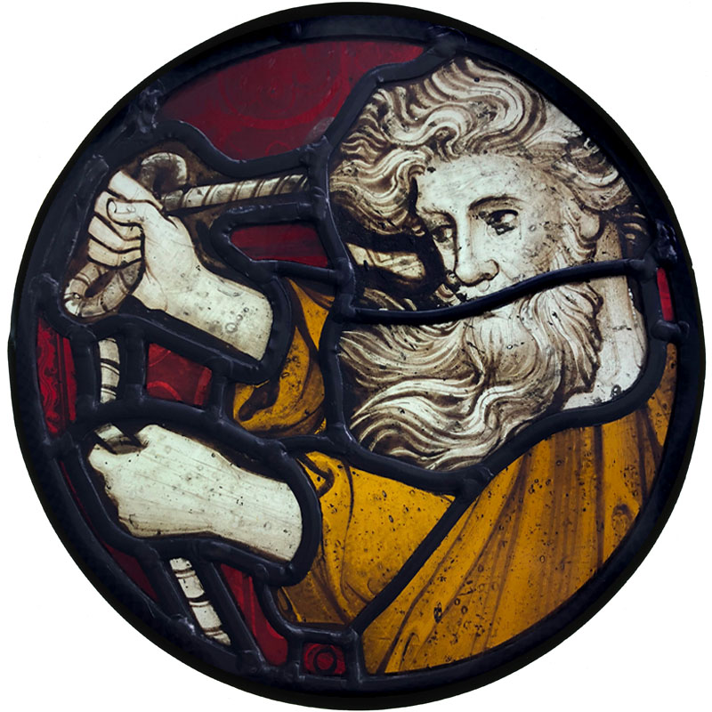 A round stained glass panel made with historic glass fragments from Charterhouse School in Godalming. The glass was originally made for the chapel in around 1872 by the London firm of Clayton & Bell. It has survived two fires and has been reinvented into a new work of art in my studio in Farncombe.